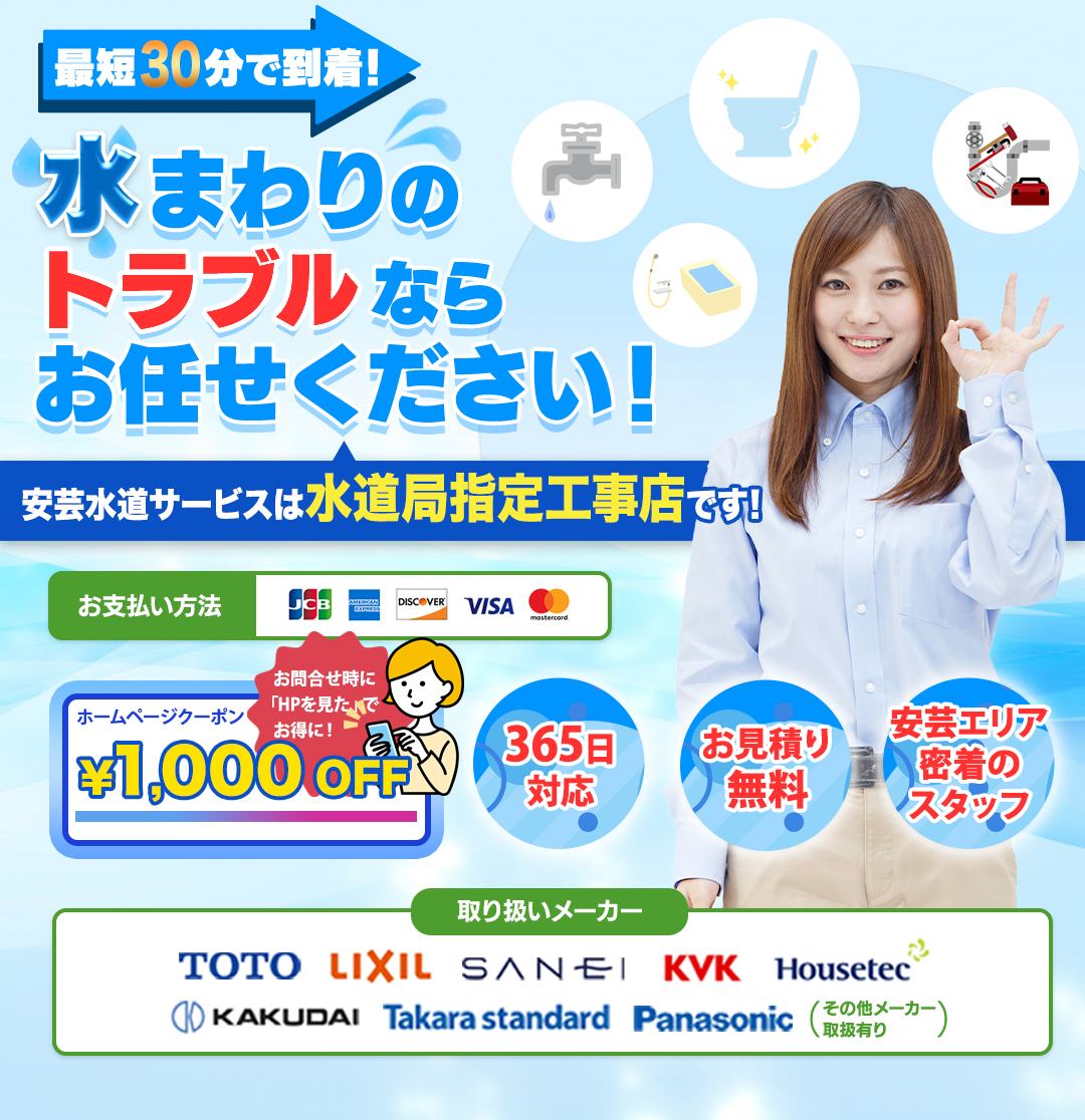 【安心安全の水道局指定店】広島・安芸エリアのあなたの町の水道屋さん安芸水道サービス